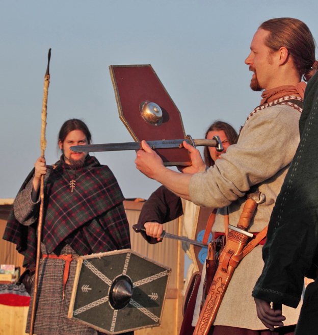 Flachseite der Schwertklinge oder das bloße „Auflegen“ der Waffe.