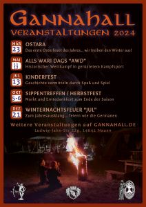 JahresfestDieses Jahr haben wir den 22.03. für unser Osterfeuer ausgewählt und da es sich beim Frühlingsanfang auch heute noch um einen höchst erfreulichen Anlass handelt, werden auch wir dieses Fest feuchtfröhlich zelebrieren. Met, Bier und auch deftige Speisen werden folglich in ausreichender Menge angeboten… also kommen Sie vorbei und feiern Sie mit uns (in) den Frühling! ...
